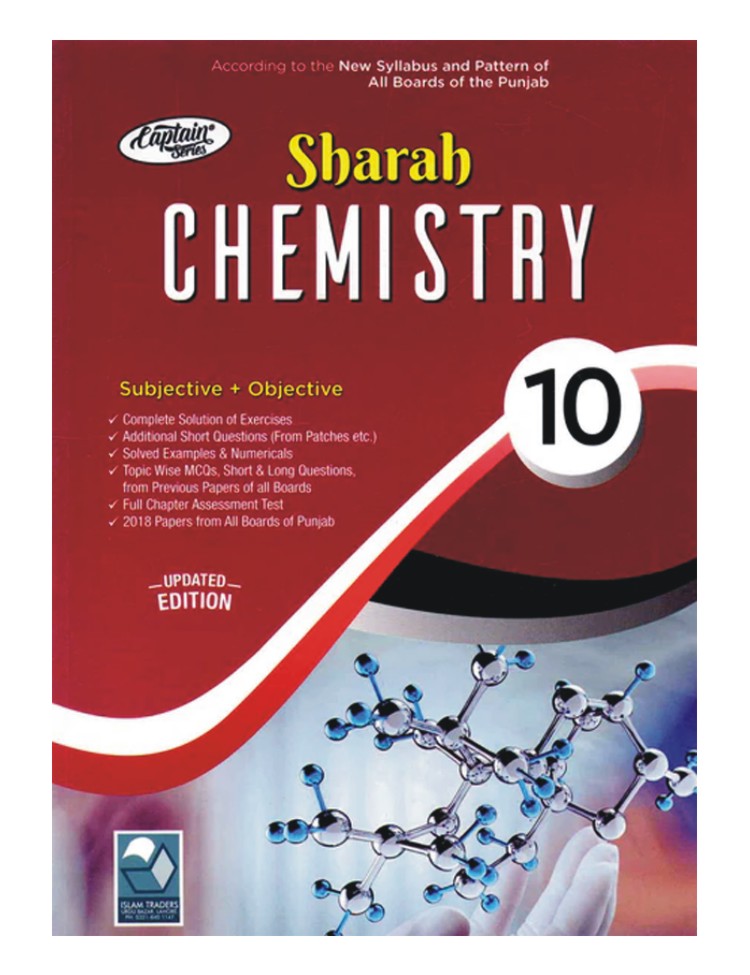Sharah Chemistry Key Book For Class 10 by Captain Series offers complete solutions to textbook exercises, board-style past papers, and concise concept summaries to strengthen understanding and exam readiness.